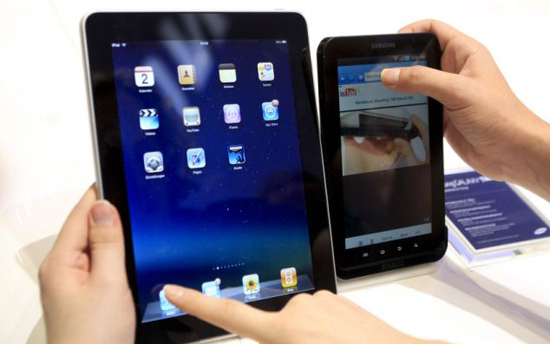 Computer of malic IPad and flat of SamSung Galaxy Tab (right)